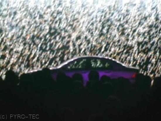 z.B.: musiksynchrone Autopräsentation „Carmina Burana“ mit Lasereffekten, mystischen Nebel,