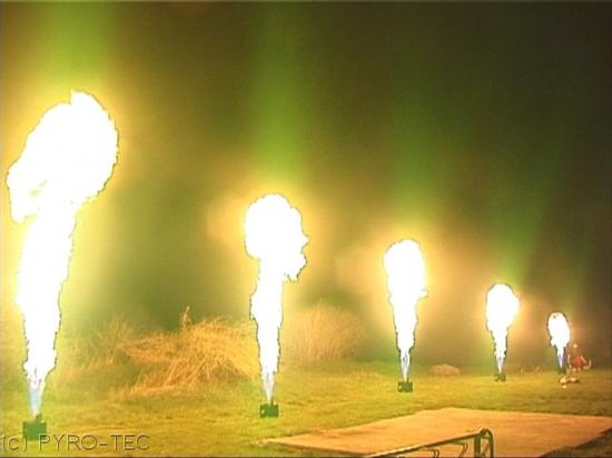Zugelassene Bühnengasanlage mit bis zu 16 Brennern zur Erzeugung von Flammensäulen und Feuerpilzen von 1m bis 6m Höhe für den Innen- und Außenbereich geeignet. (Vermietung, Durchführung und Verkauf)