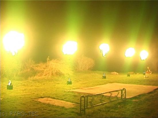 Zugelassene Bühnengasanlage mit bis zu 16 Brennern zur Erzeugung von Flammensäulen und Feuerpilzen von 1m bis 6m Höhe für den Innen- und Außenbereich geeignet. (Vermietung, Durchführung und Verkauf)