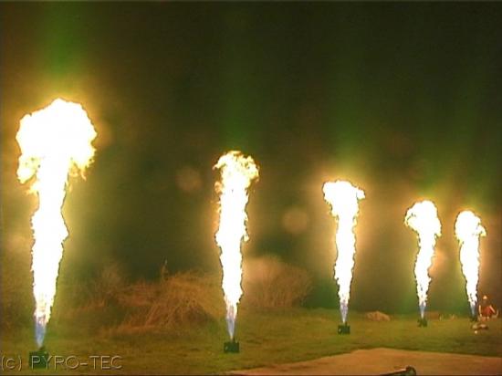 Zugelassene Bühnengasanlage mit bis zu 16 Brennern zur Erzeugung von Flammensäulen und Feuerpilzen von 1m bis 6m Höhe für den Innen- und Außenbereich geeignet. (Vermietung, Durchführung und Verkauf)